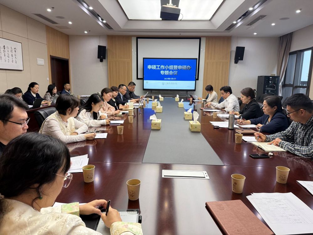 系统部署强机制,压实责任聚合力。在申硕工作小组暨申硕办专题会议上,申硕办公室主要负责人围绕《申请新增博士硕士学位授予单位简况表》,细化分解核心指标任务,明确责任部门与完成时限。同时结合省内外高校调研经验,解读申报材料填报规范,强调数据精准性、逻辑严谨性与特色凝练的关键作用。职能部门现场回应各申硕学位点诉求,优化分工方案,形成“横向联动、纵向贯通”的责任体系。通过多次问题导向的深度研讨,进一步厘清了资源配置路径、材料优化重点以及校内外协同机制,为申报工作扫清障碍。目前,已完成学位授予单位简况表首轮填报,申硕办将于暑期进行凝练优化并完善支撑材料。