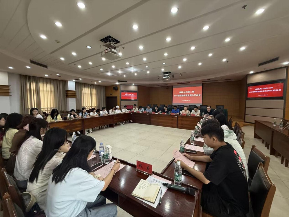 首先,倪艺洋副主任致欢迎辞并介绍参会老师,2025级新生依次做自我介绍。随后,倪艺洋副主任介绍我校的办学历史,其前身江苏教育学院是新中国初期江苏省17所首批公办本科院校之一,学校具有深厚的历史底蕴与办学特色,在教师教育领域的改革实验机制和国家级培训基地建设等领域成效卓越。她希望同学们在校期间利用好南师和二师联合培养的双边优势资源,规划好研究生阶段的学习,勤学好问,在未来的三年收获满满。